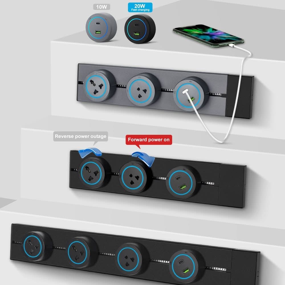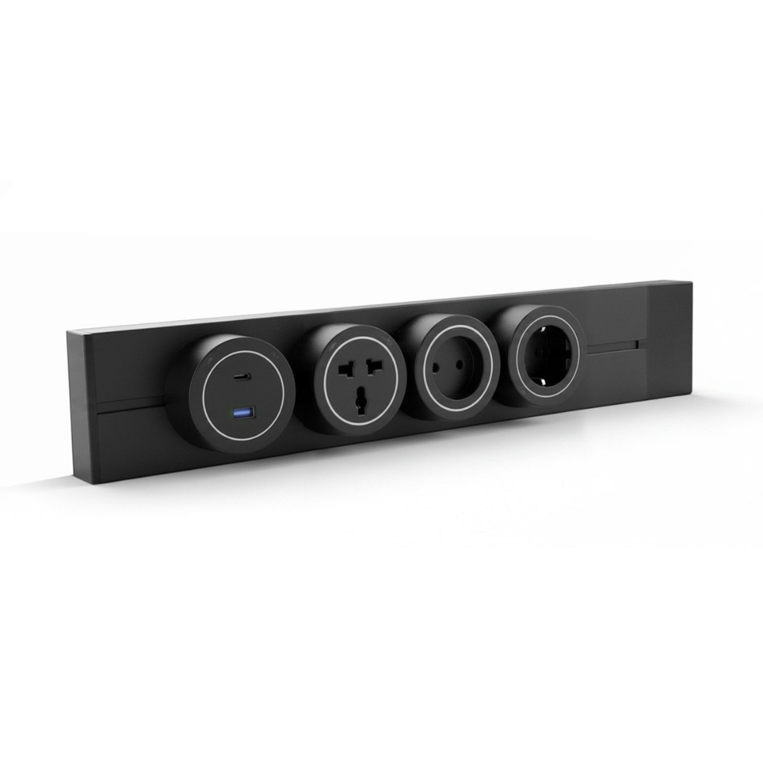 • بريزة سوكيت USB + Type-C مضيئة بلون أسود.