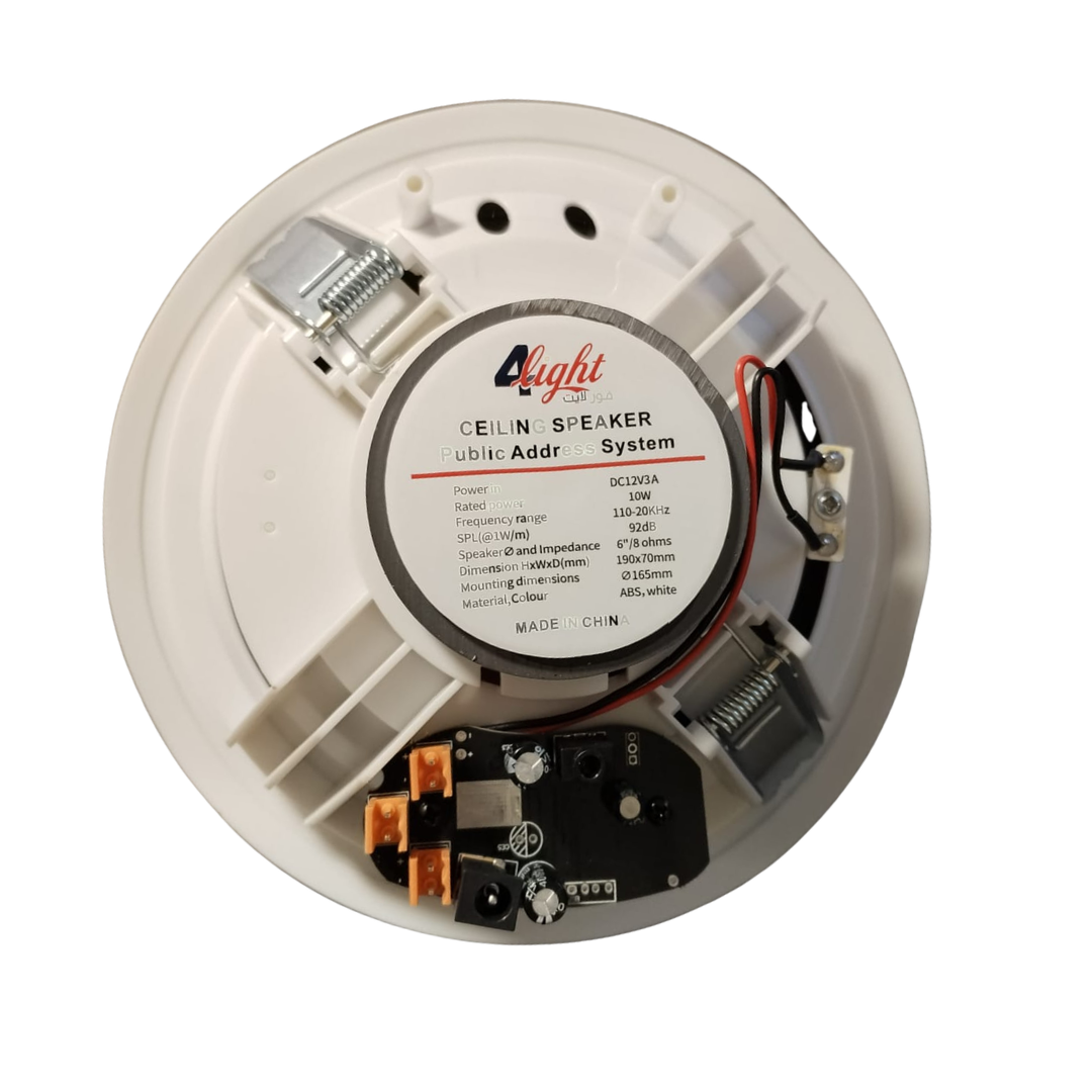 سماعة صوت سقف بلوتوث عالية الجودة من فورلايت بضمان 3سنوات 100فوات – 8اوم -92dB – فتحة داخلي 16.5سم دائري – خارجي 18.5سم