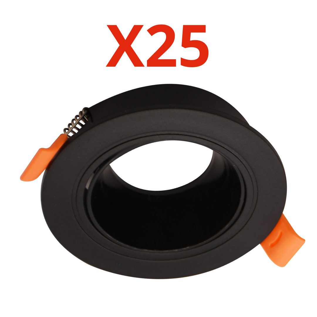 عدد 25 قطعة اطار فريم شاسية سبوت كاس اسود مدور متحرك مصنوع من خام ABS ضد الاشتعال – يتحمل حتي 100وات ضمان خمس سنوات بضمان خمس سنوات سيان تك