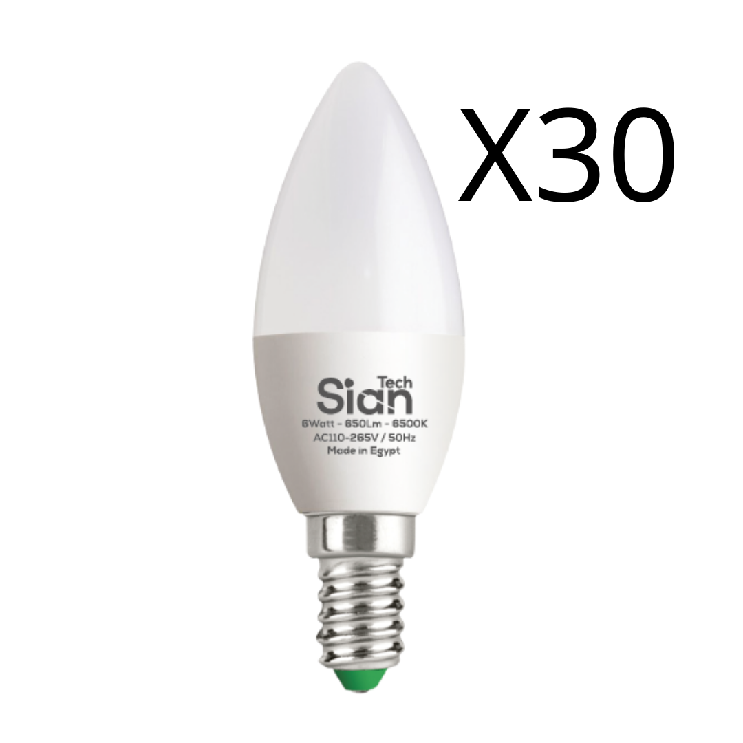 لمبة ليد بلحة للنجف 6وات 30 قطعة ابيض - 6500كيلفن - 650ليومن - 25000ساعة تشغيل 3سنوات ضمان من سيان تك