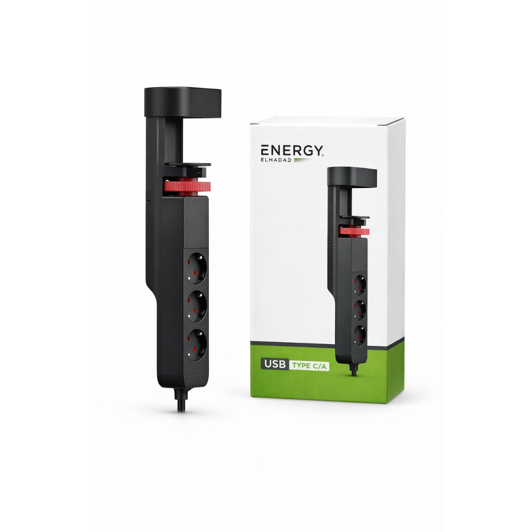 مشترك وورك ستيشن مكتب 16 امبير يحتوي علي 3 مخرج مجوفة وعدد 2فتحة USB وعدد فتحة Type -C + سلك طول 2متر من انيرجي