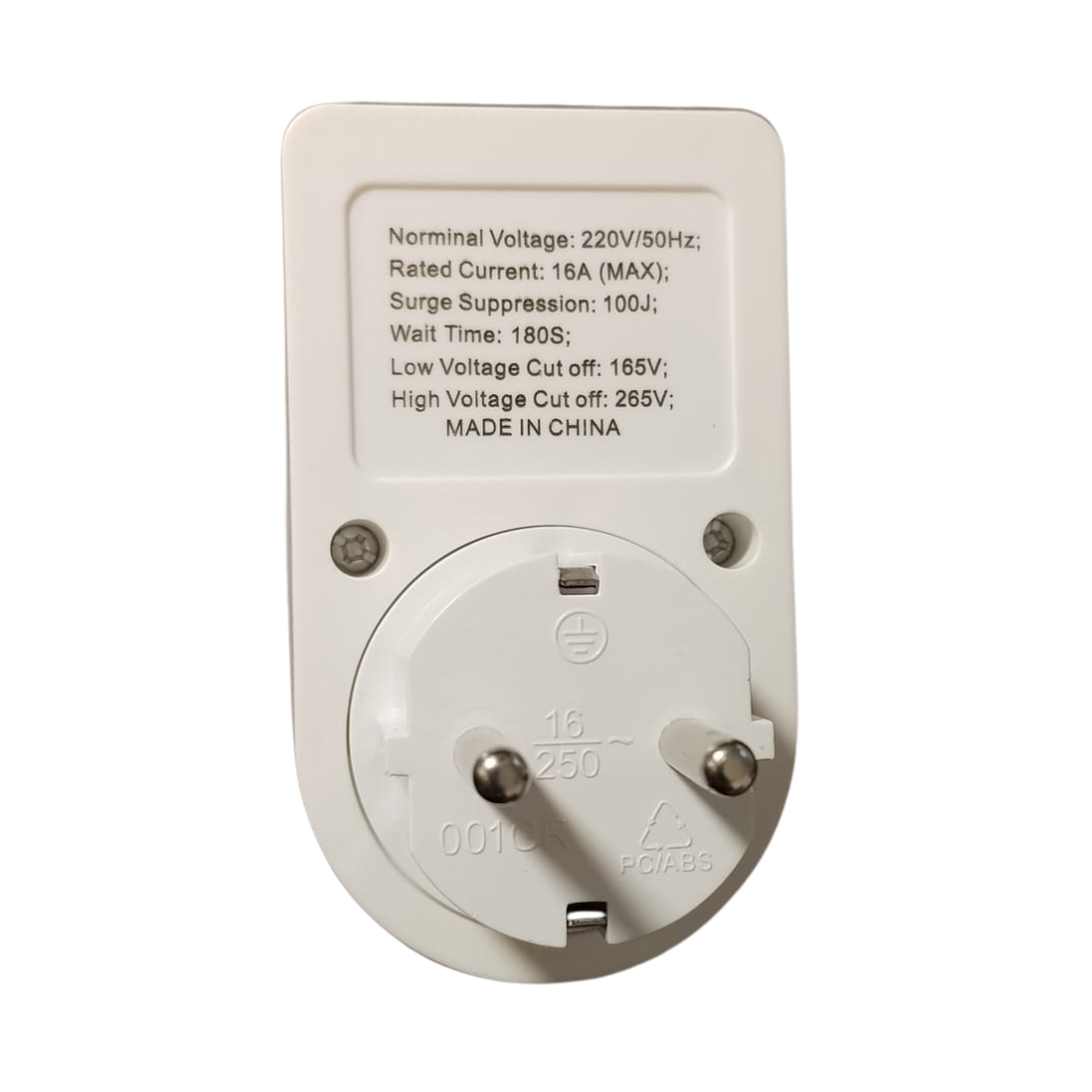 جهاز حماية واقي الجهد الكهربي المقدر A16 امبير للاجهزة الكهربائية، يمنع تلف المعدات الكهربائية والالكترونية،يقطع عند انخفاض الكهرباء 175 فولت او زيادة التيار فوق 165فولت من انيرجي